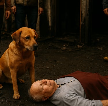 Dentro, un uomo anziano giaceva privo di sensi. Fuori, un cane di nome Trouble cercava disperatamente di trascinarlo via da quell’inferno.