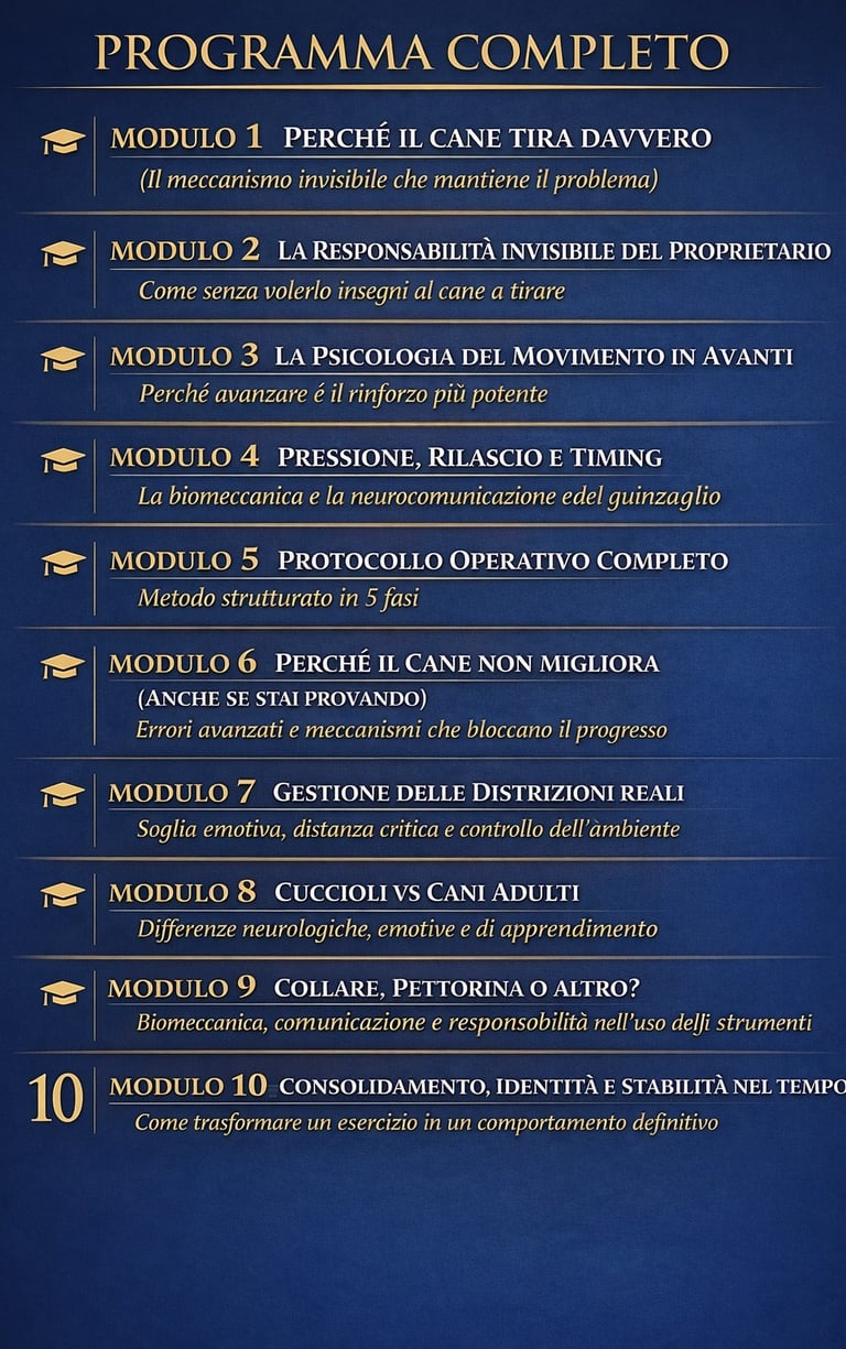In questo videocorso ti spiegherò come funziona davvero questo comportamento e soprattutto come insegnare al tuo cane a camminare correttamente al guinzaglio.